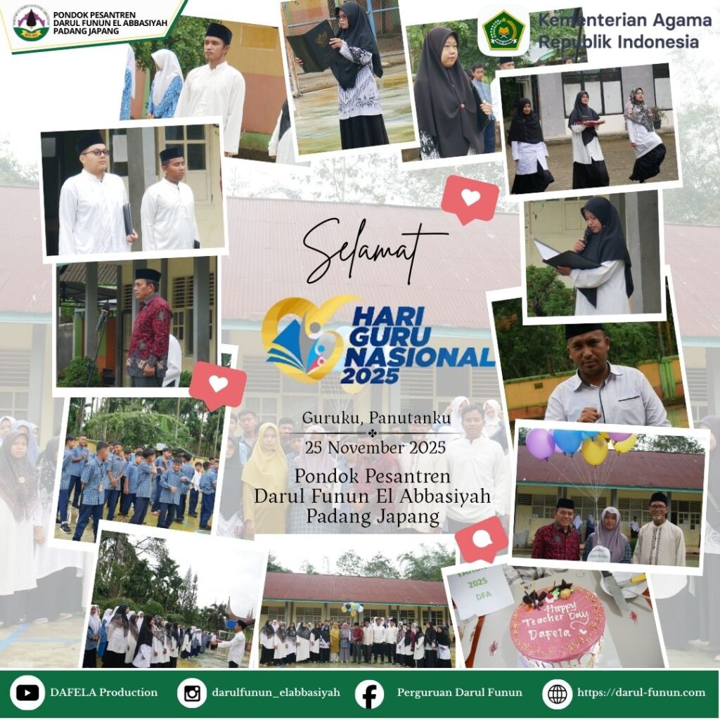 PADANG JAPANG, LIMA PULUH KOTA– Ratusan santri, ustadz, dan ustadzah Pondok Pesantren Darul Funun El Abbasiyah Padang Japang dengan khidmat memperingati Hari Santri Nasional 2025 yang jatuh pada Rabu, 22 Oktober 2025. Peringatan ini diisi dengan upacara dan berbagai perlombaan Islami untuk memupuk semangat kebangsaan dan kompetensi santri. Upacara Penuh Khidmat Jadi Pembuka Puncak peringatan