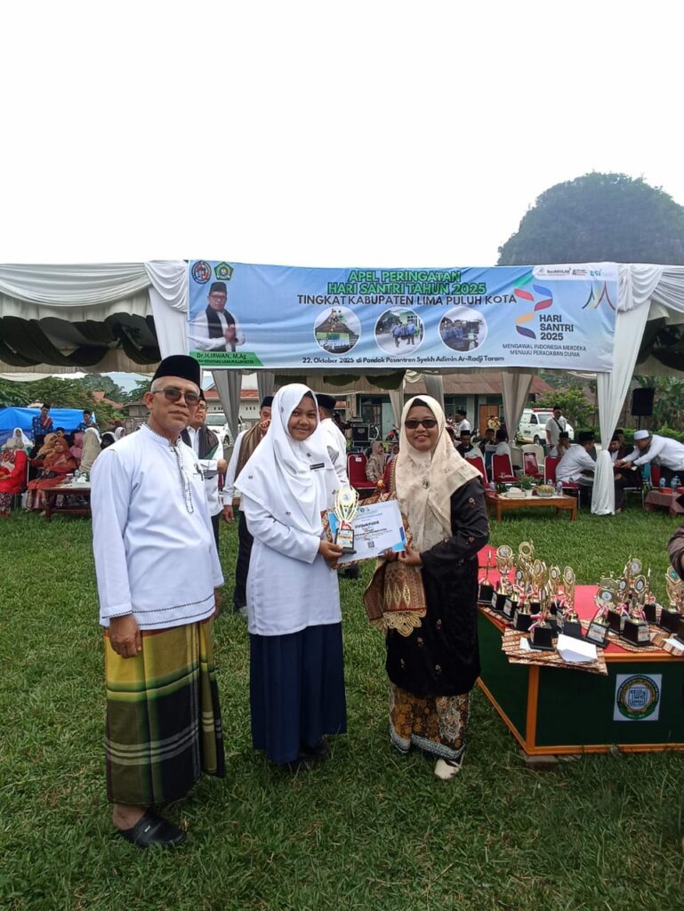 iNFORMASI❗ Rabu, 22 Oktober 2025 Selamat kepada Santri Syofina Mawaddah terbaik 3 Pidato Bahasa Inggris antar santri se Kabupaten Lima Puluh Kota dalam rangka peringatan hari santri nasional 2025 وَمَااللَّذَّةُ إِلاَّ بَعْدَ التَّعَب` “Tidak ada kenikmatan kecuali setelah kepayahan” Segala yang indah tak datang dengan instan. Setiap nikmat, setiap keberhasilan, setiap ketenangan—semuanya lahir dari proses.